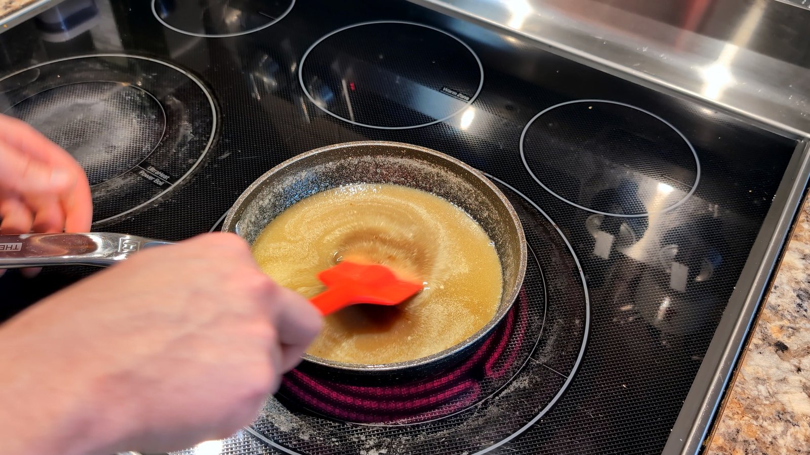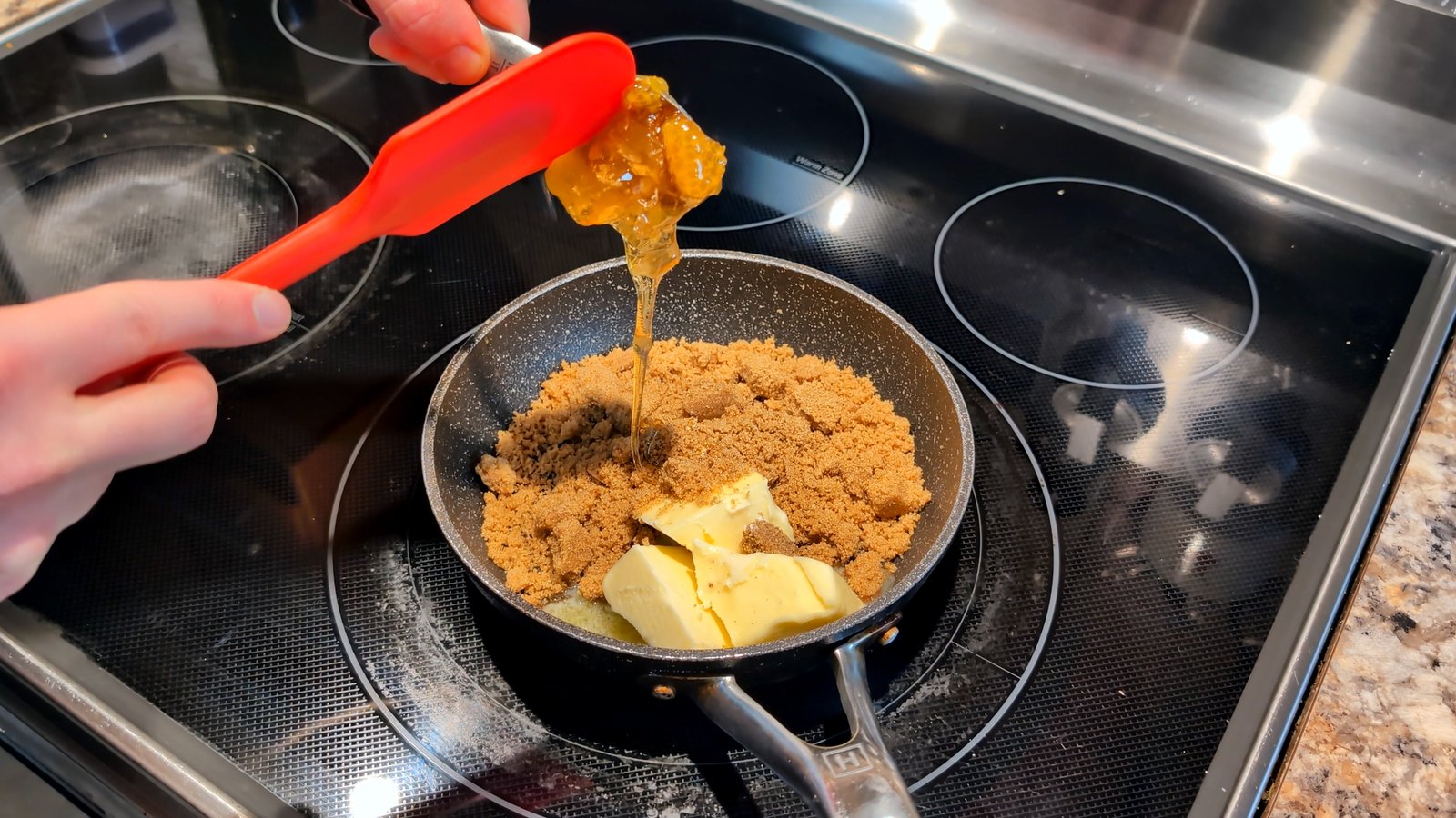 - Stir until the butter is melted and the sugar is fully dissolved. Remove the sauce pan from the heat.