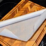 - Line a 8 inch square baking pan with parchment paper. Press half of the oat mixture into the bottom of the prepared pan to form an even layer.