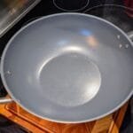 - In a wok, heat 2 Tbsp. vegetable oil over low heat. Add the roughly chopped 5 g dried red chilies. Gently cook, stirring occasionally, until fragrant (~5 minutes). Be careful not to burn the chilies. Remove from heat and set aside.