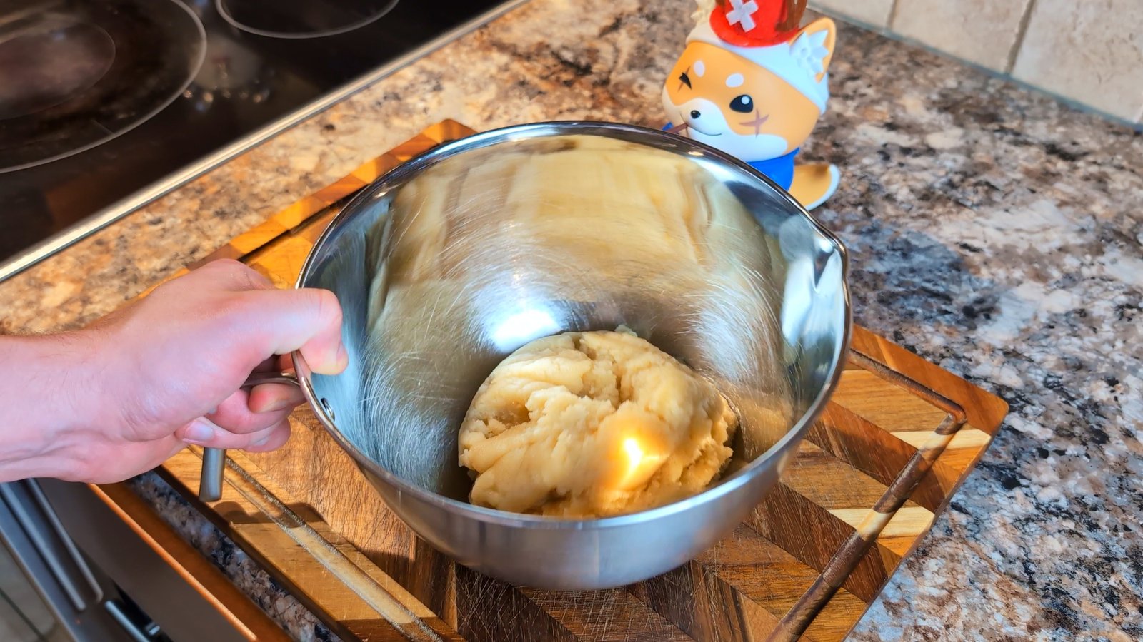 - Transfer the dough to a bowl and let it cool for 5 minutes.