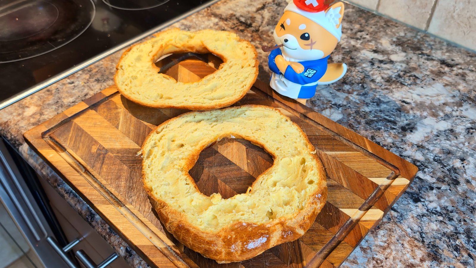 - Split the cooled pastry ring horizontally.