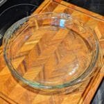 - Place the crust into a 9 in deep pie dish and cut sides that are escaping.