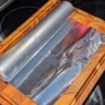 - Cover the dough with aluminum foil and fill it with ceramic pie weights or beans. Bake in the preheated oven at 350°F (180°C) for 20 minutes.